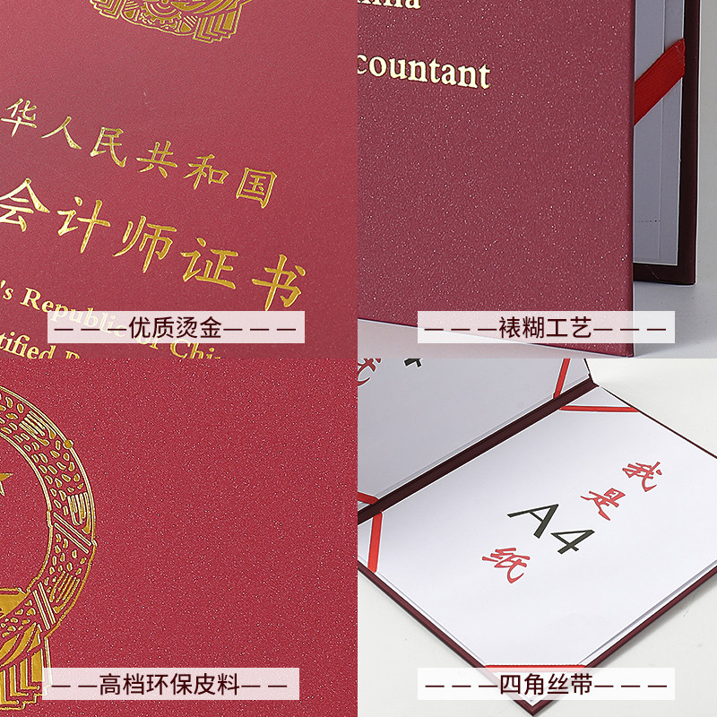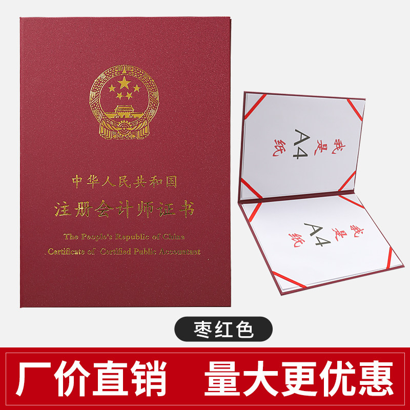 注册会计证书外壳保护封面硬壳子烫金A4证件套封皮枣红色书皮本套