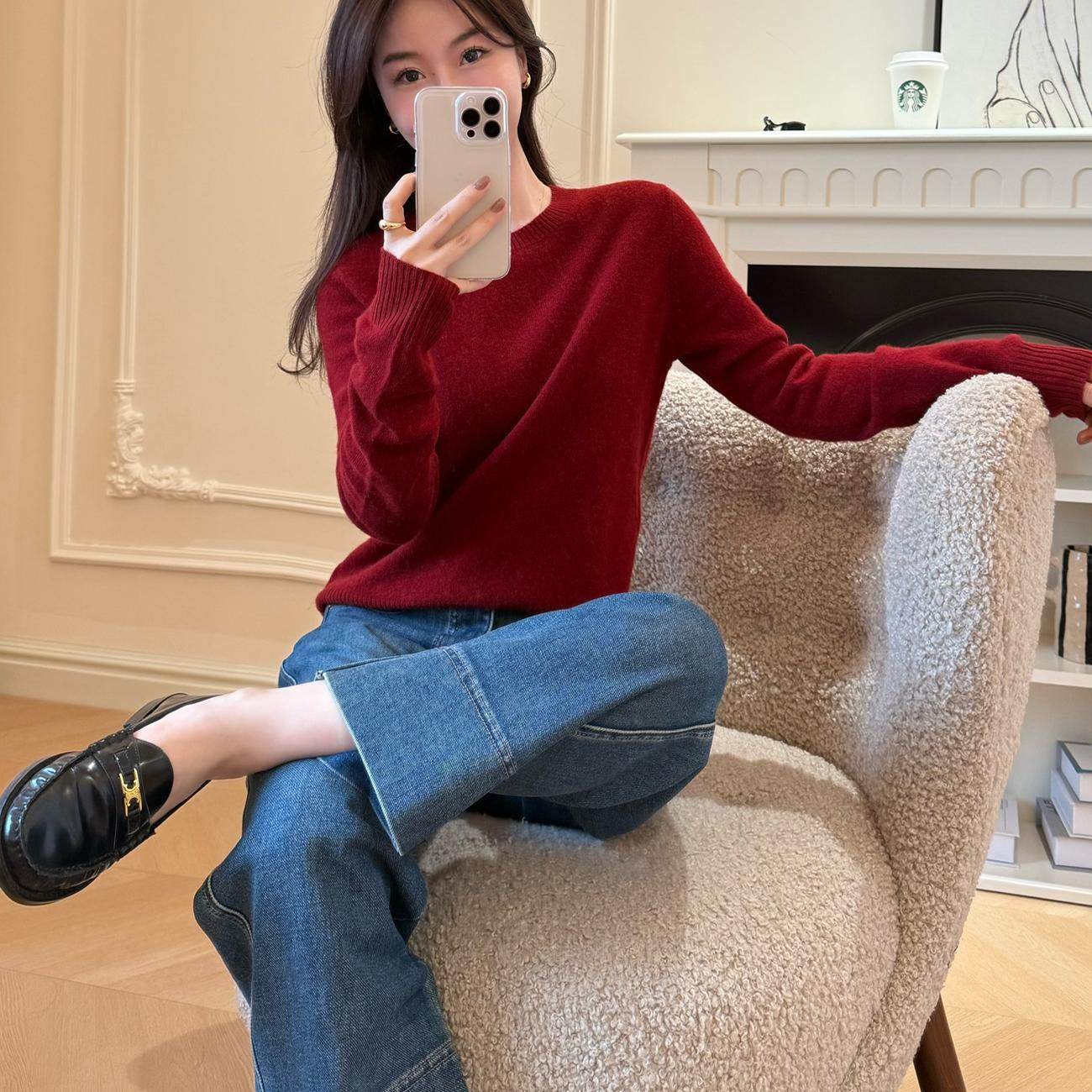 2025秋冬新款羊绒衫女低圆领宽松显瘦毛衣百搭100羊毛针织打底衫