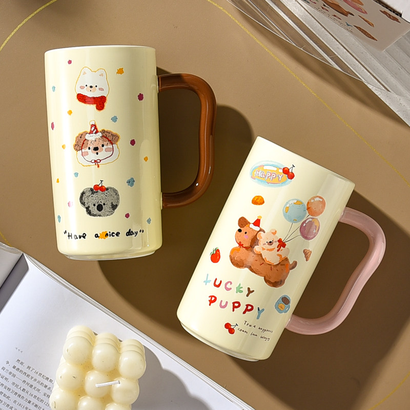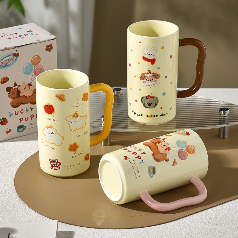 陶瓷马克杯直身上班族女情侣生日礼物大容量可爱小狗卡通高款水杯