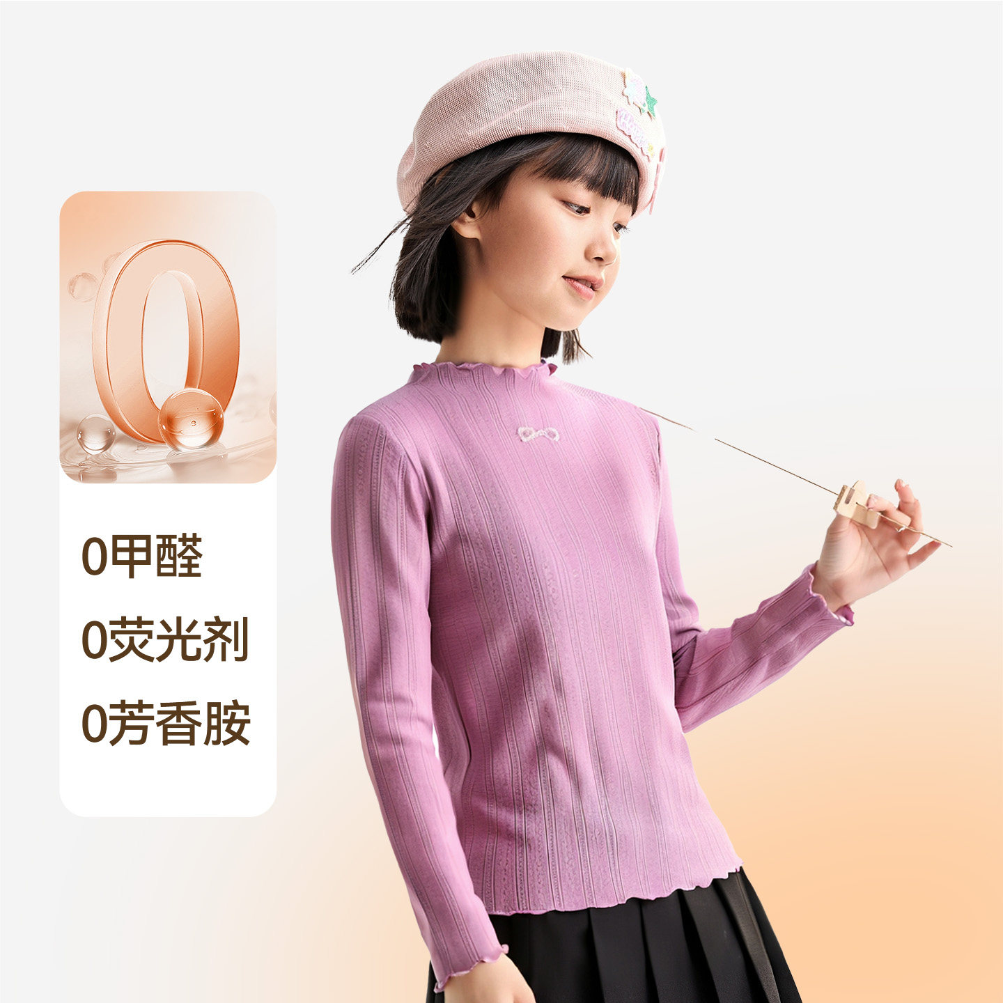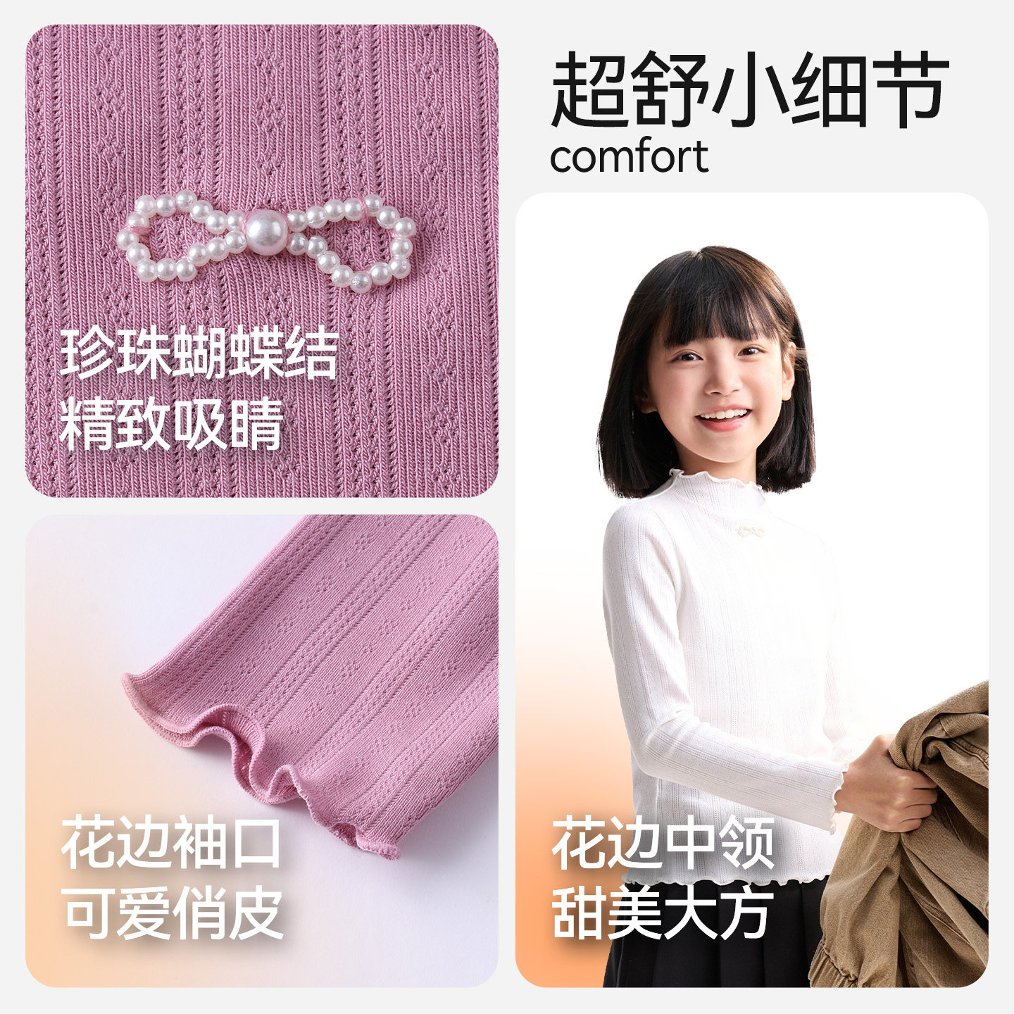 安奈儿童装女童长袖T恤2025秋新款莫代尔甜美修身轻薄弹力打底衫