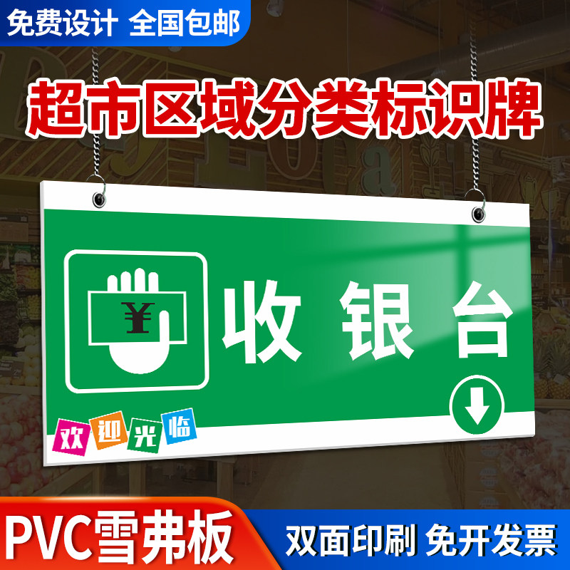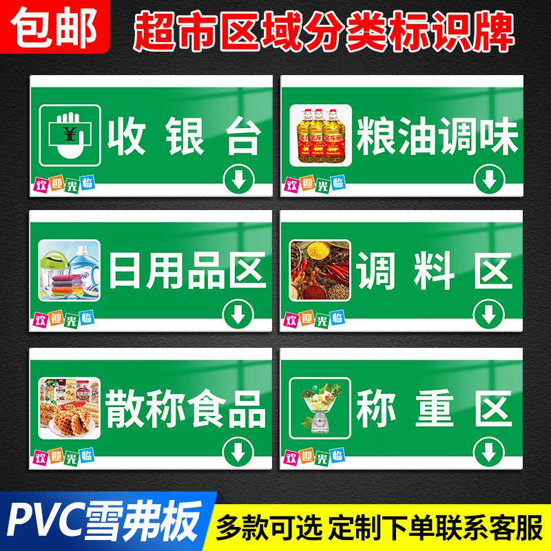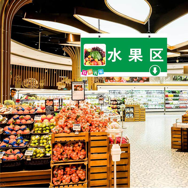 PVC雪弗板超市区域分类标识牌粮油调味收银处日用品区引导牌吊牌悬挂牌双面送挂炼超市分区指示牌提示牌定制