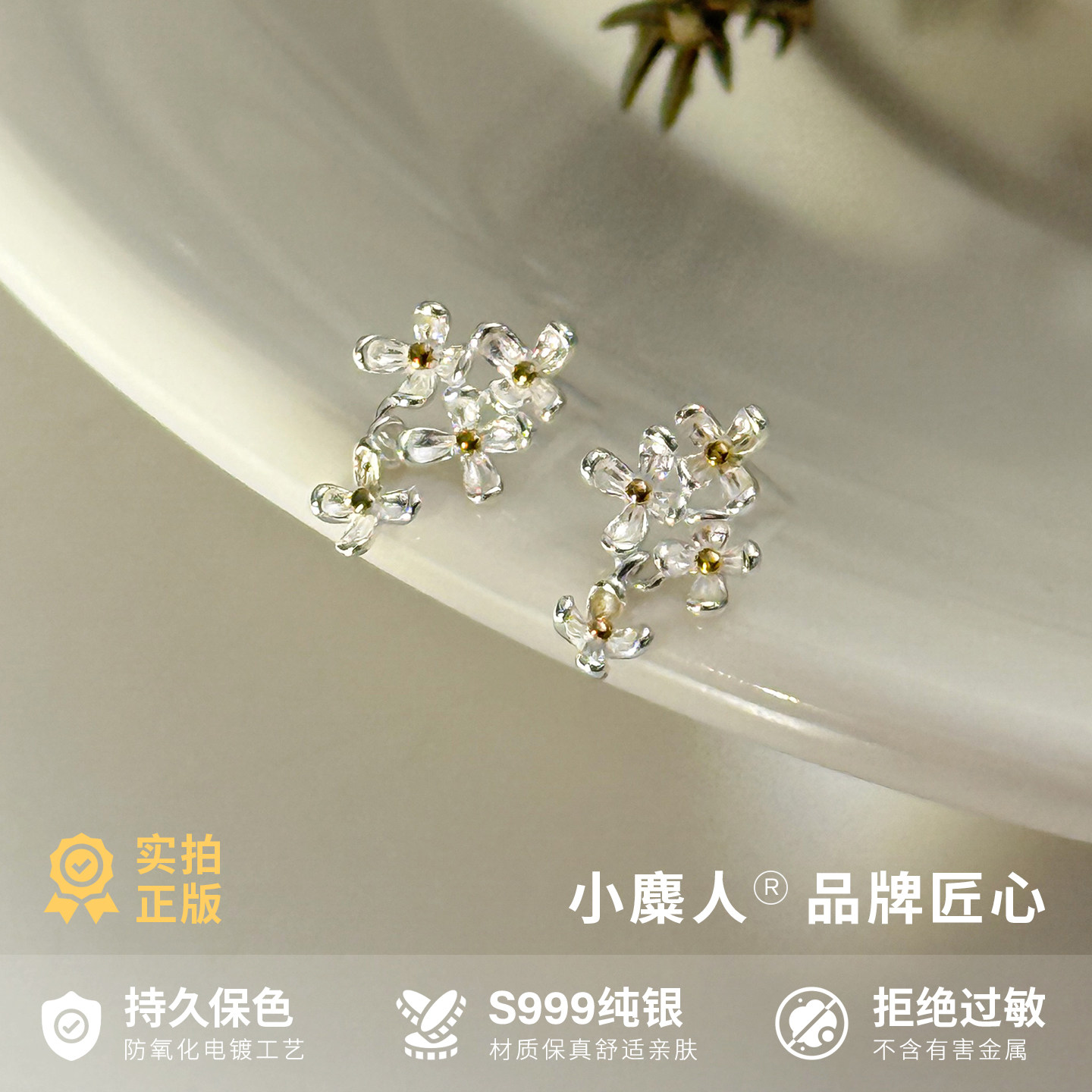 小麋人999纯银丁香花后挂耳钉女耳环耳饰时尚个性气质爆款新精致