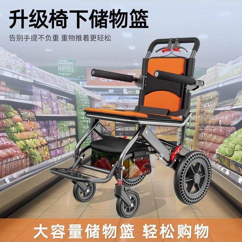 出门款推车便携铝合金老人专用带储物篮手推车折叠轻便代步老年人