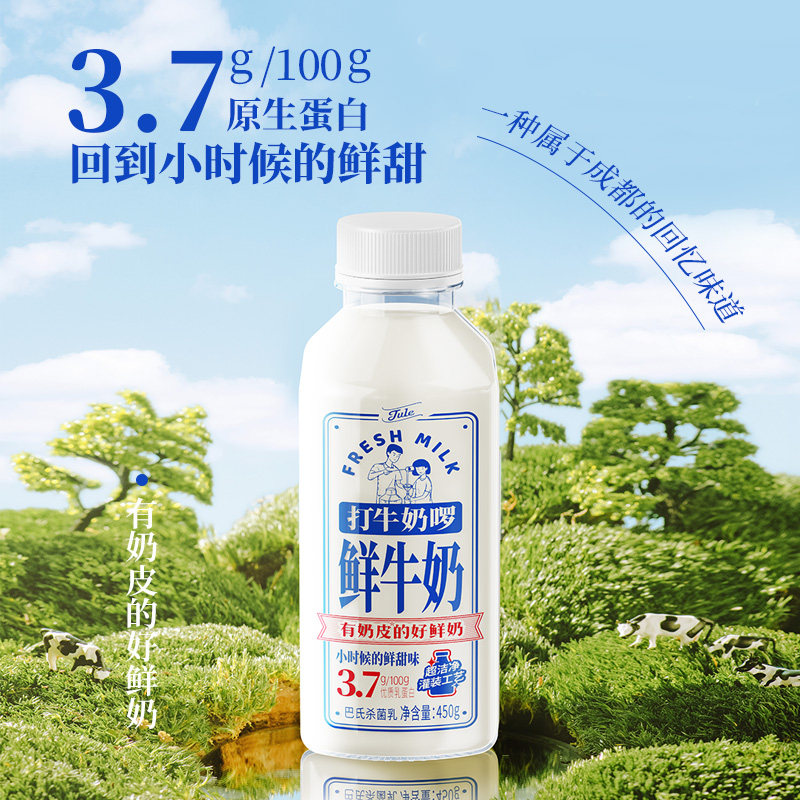 菊乐巴氏杀菌鲜牛奶450g*4瓶低温鲜奶儿童营养早餐牛奶生牛乳新鲜