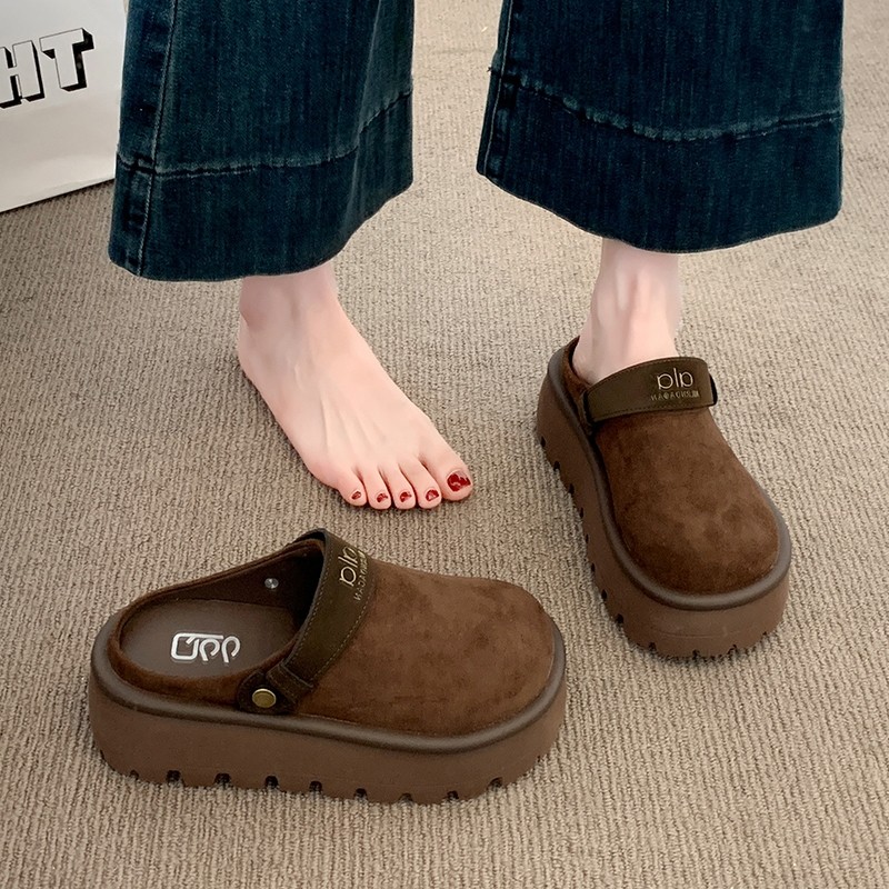 厚底勃肯鞋女2025新款冬季女鞋加绒半拖一脚蹬穆勒鞋子增高博肯鞋