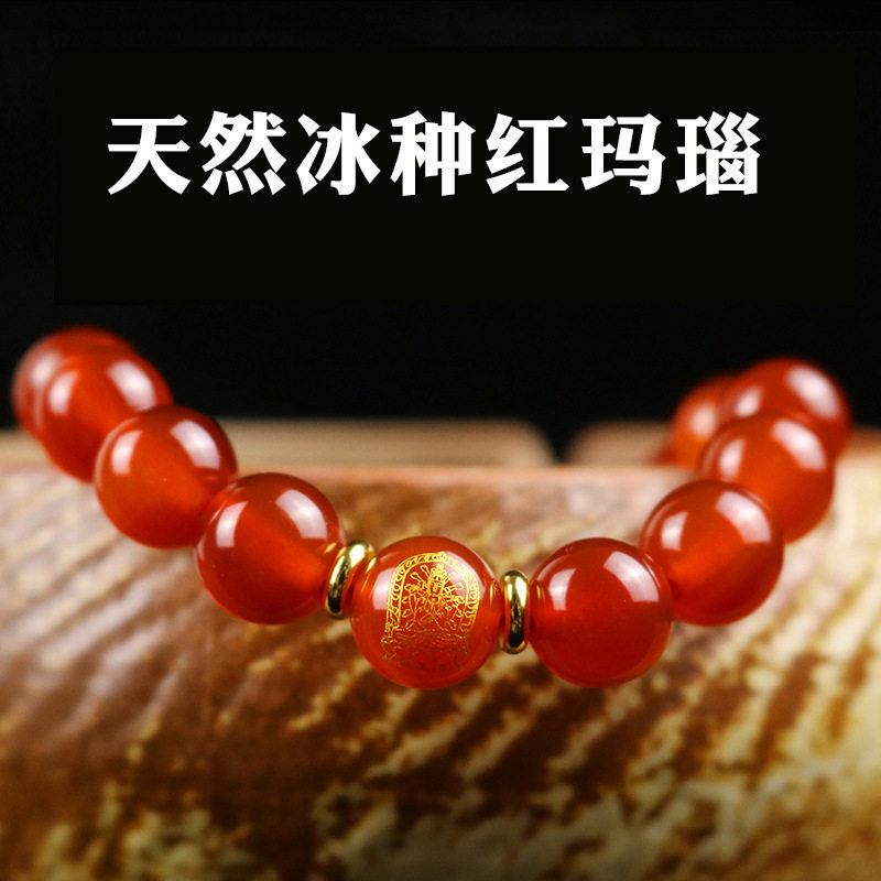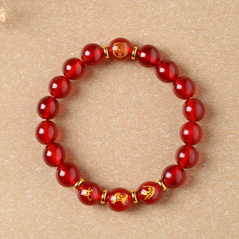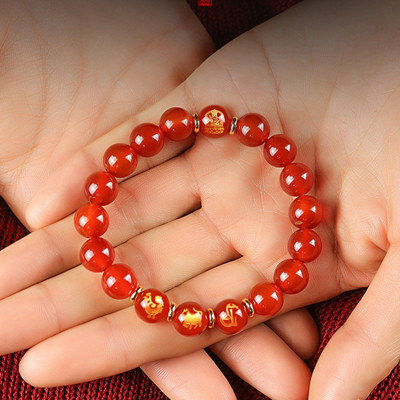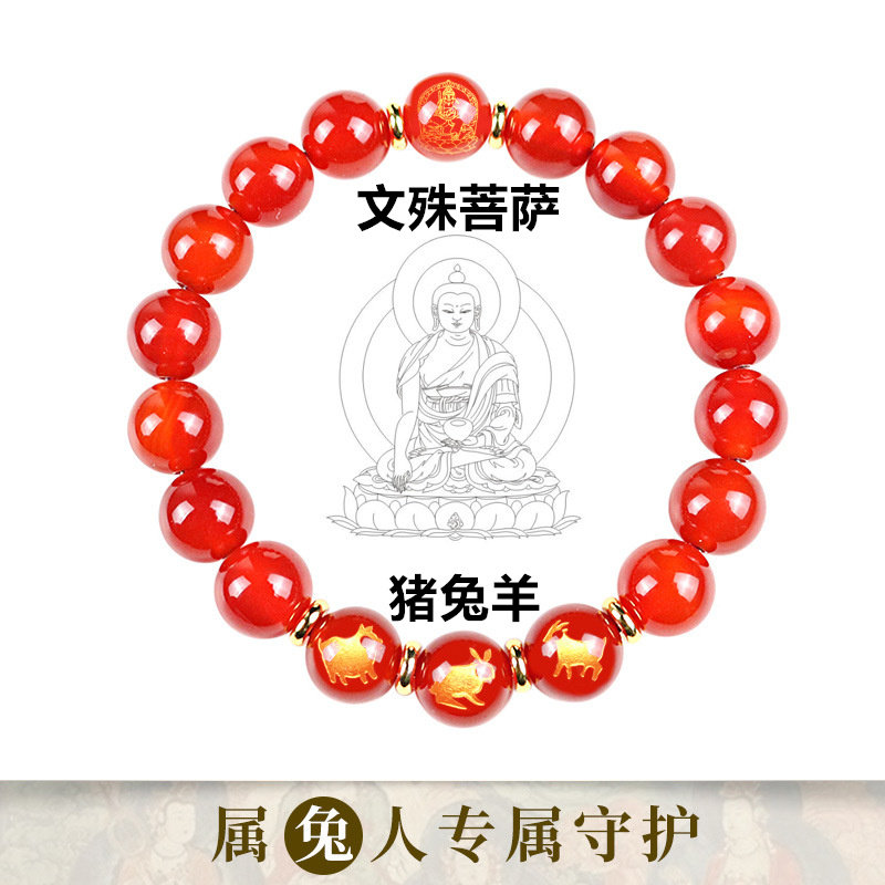 天然红玛瑙生肖本命佛守护神手链本命年2024兔牛羊狗三合手串珠子