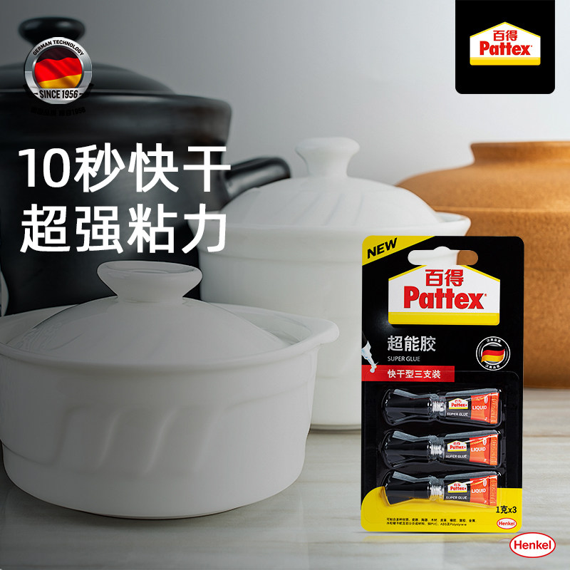 汉高百得超能胶玻璃胶水透明快干液体胶陶瓷塑料金属3支一组