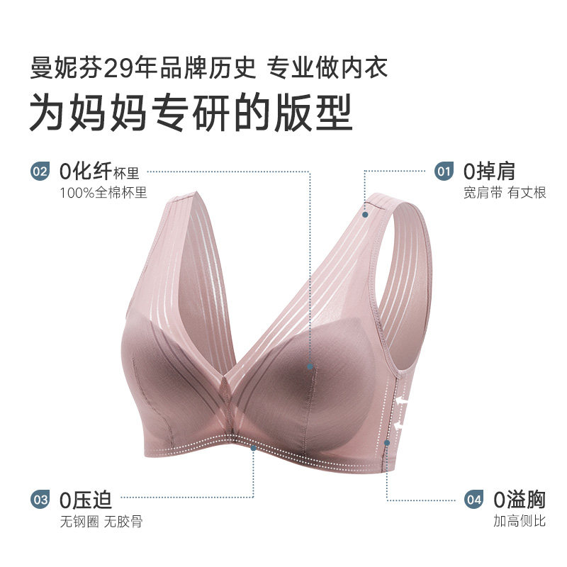 曼妮芬棉质生活棉内衣女士大码妈妈文胸无钢圈薄款无痕胸罩