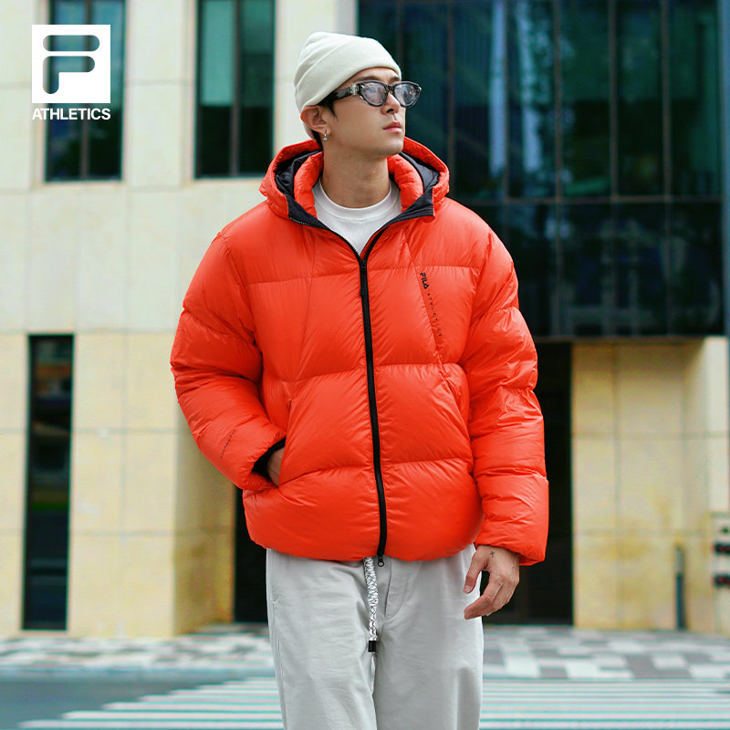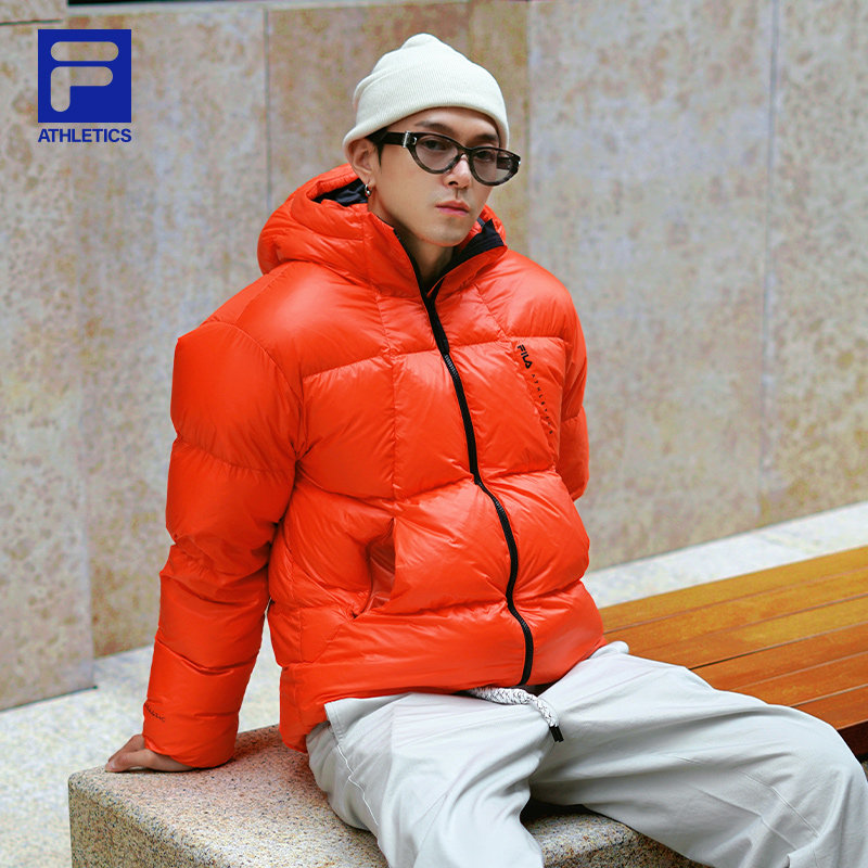 90鹅FILA飞羽斐乐羽绒服2025冬季新款运动保暖宽松红色新年外套男
