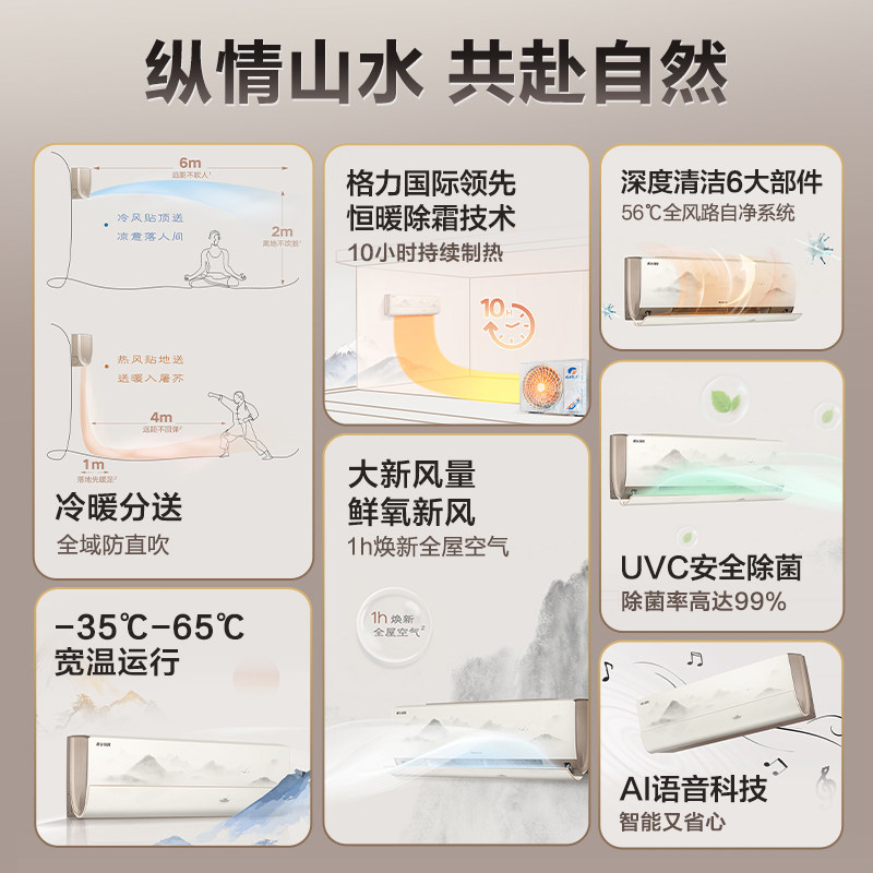 【格力官方】新一级能效正1.5匹变频冷暖智能新风空调国风挂机