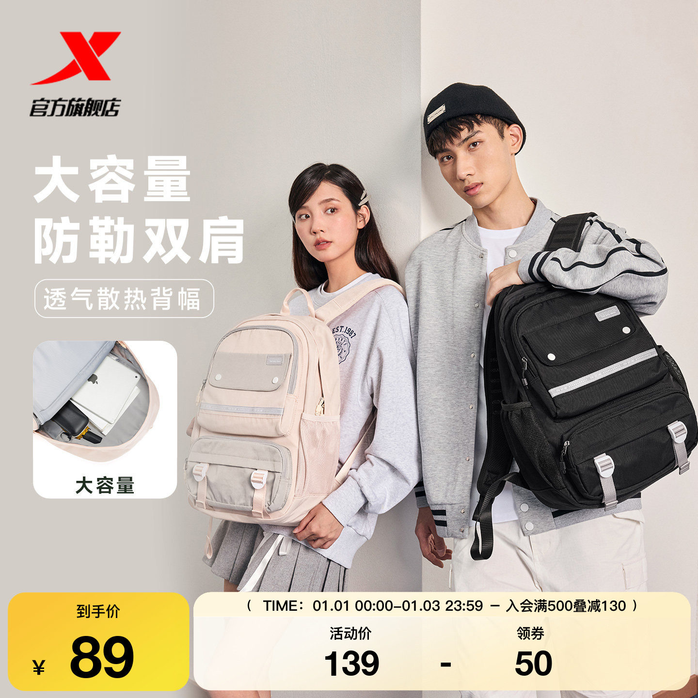 特步书包初中女生2025秋季大容量轻便男双肩徒步背包情侣款电脑包