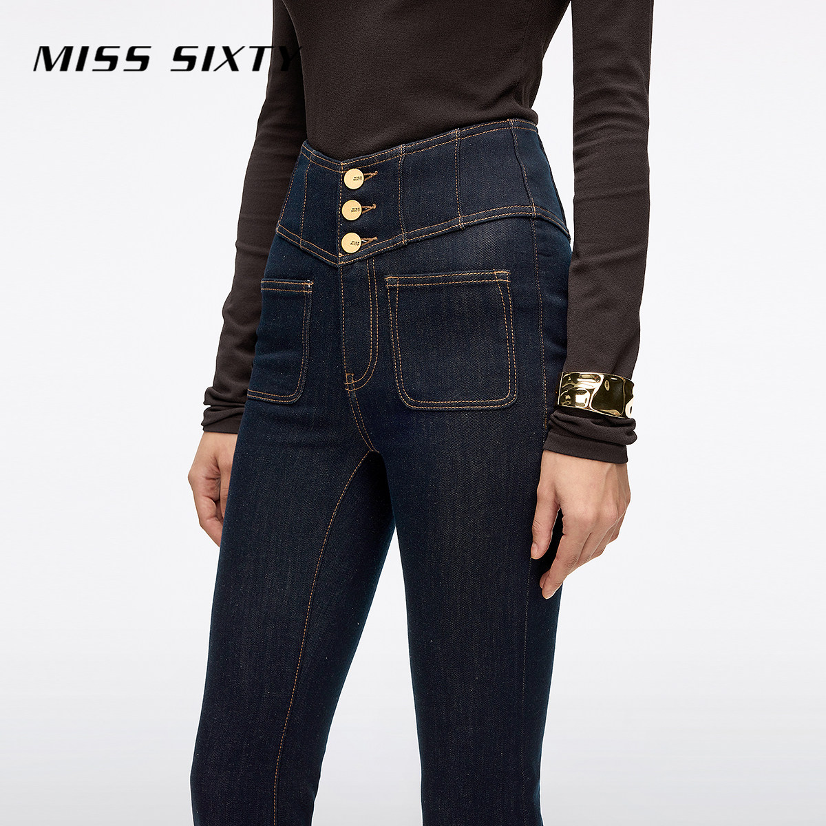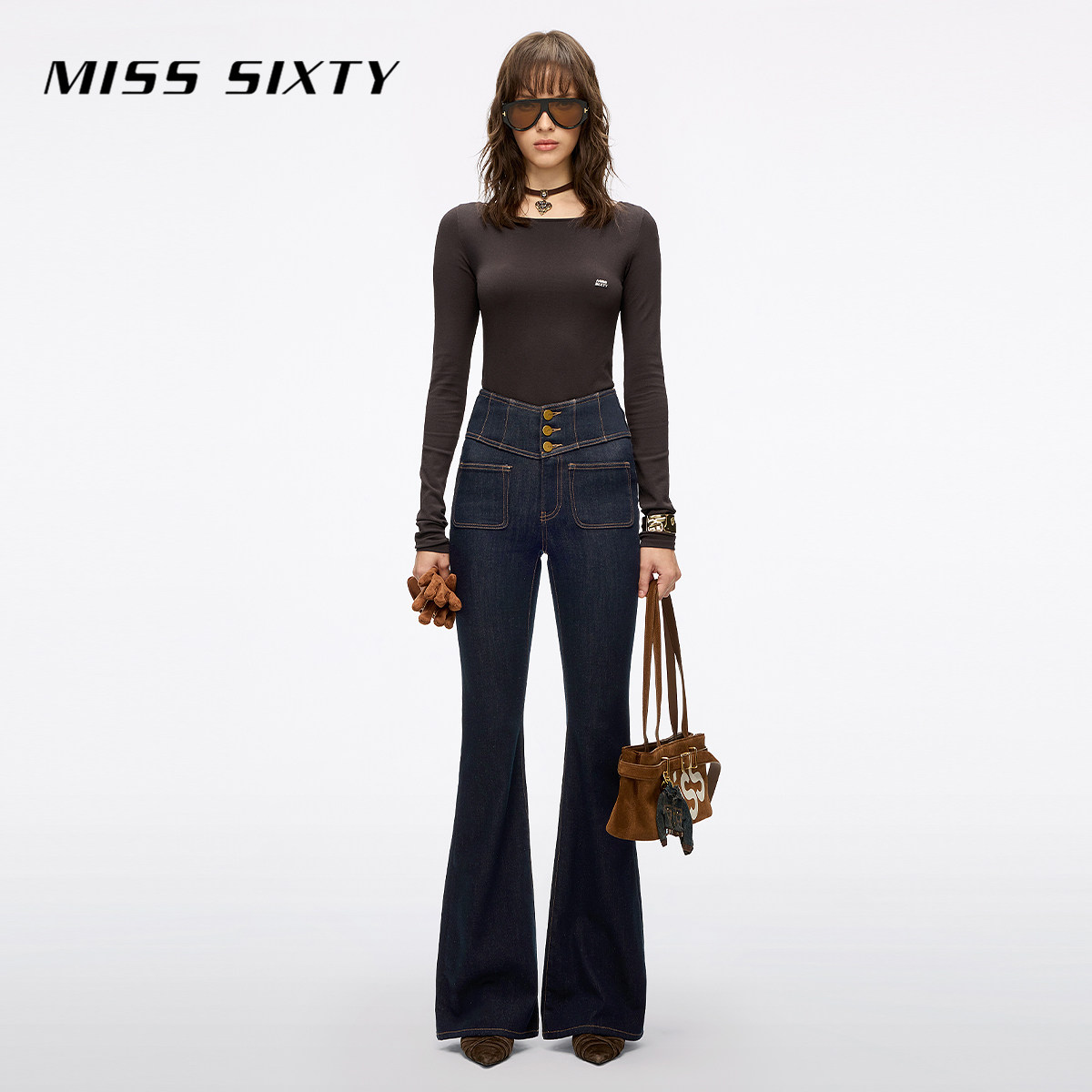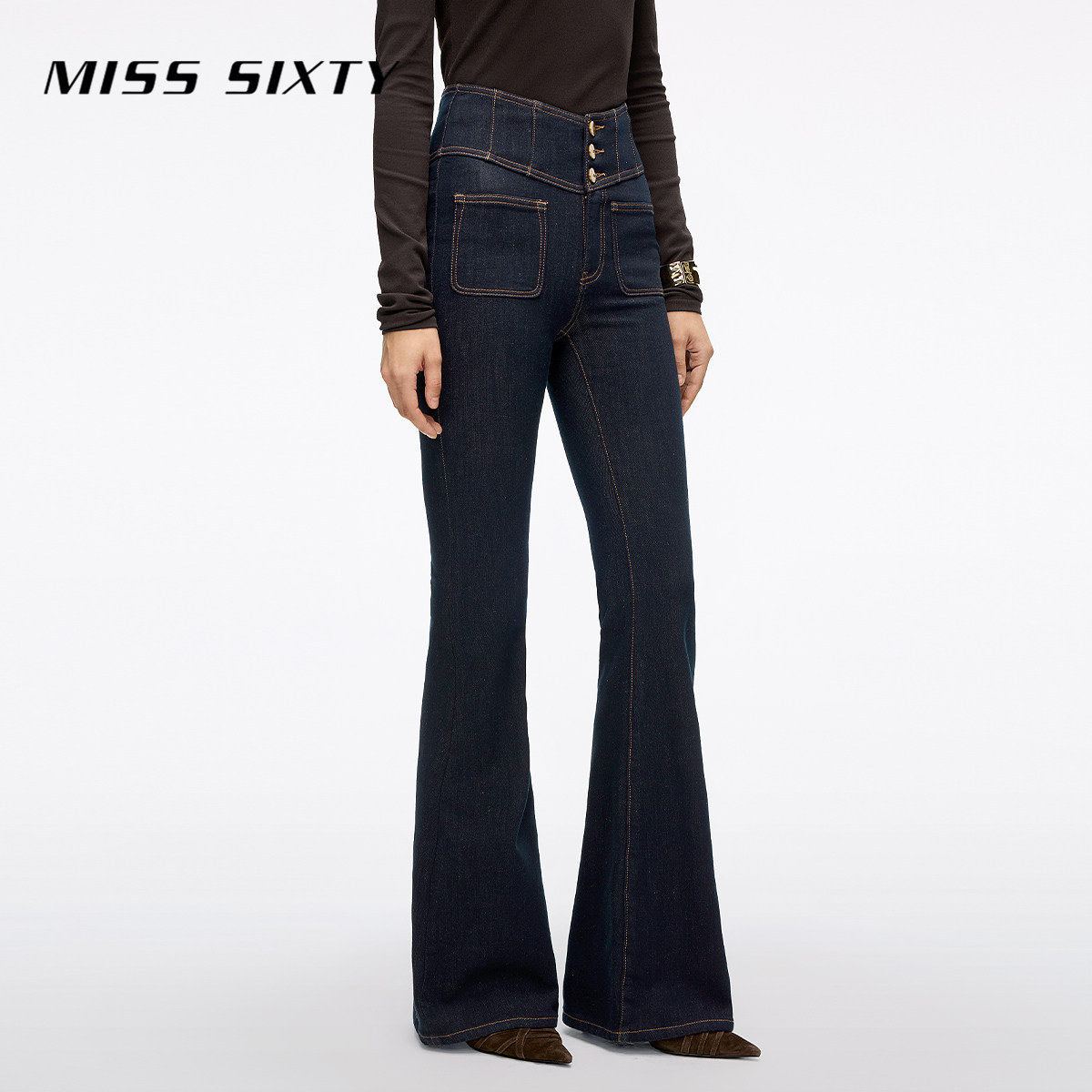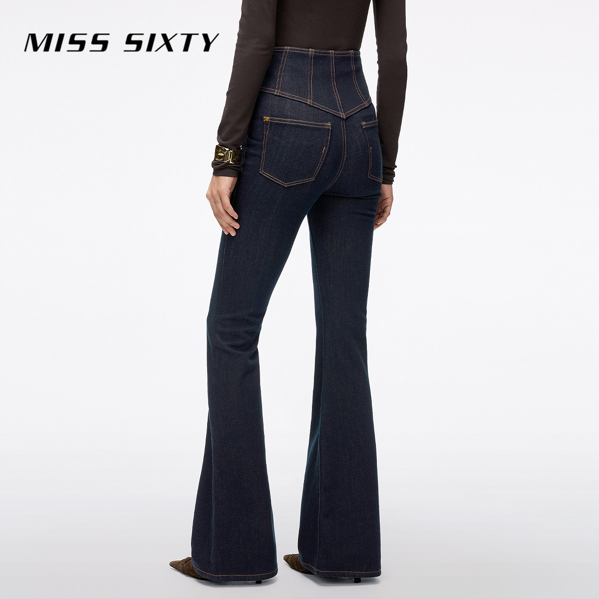 【超模裤】Miss Sixty25秋新款抓毛牛仔裤女V型高腰显瘦喇叭长裤