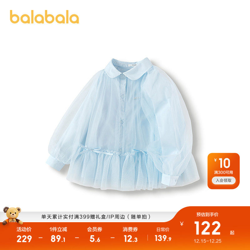 巴拉巴拉童装女童长袖衬衫儿童上衣2025秋装新款网纱衬衣甜美百搭