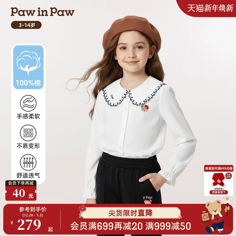 【商场同款】PawinPaw卡通小熊童装25年秋季新款女童长袖衬衫