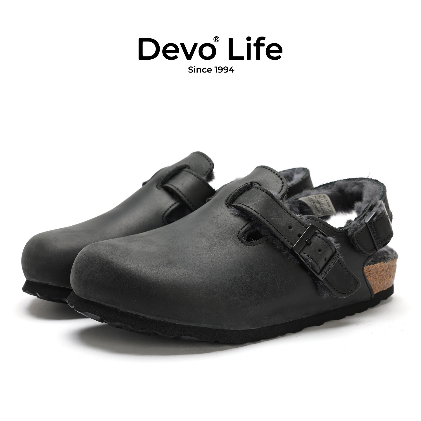 Devo/的沃软木拖鞋包头半包棉鞋加绒加毛外穿秋冬季新款女鞋23007