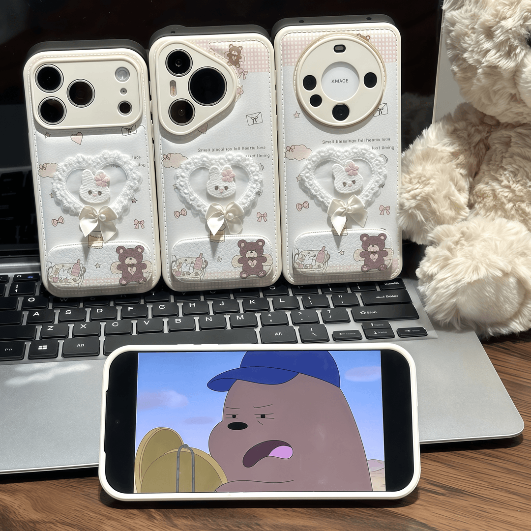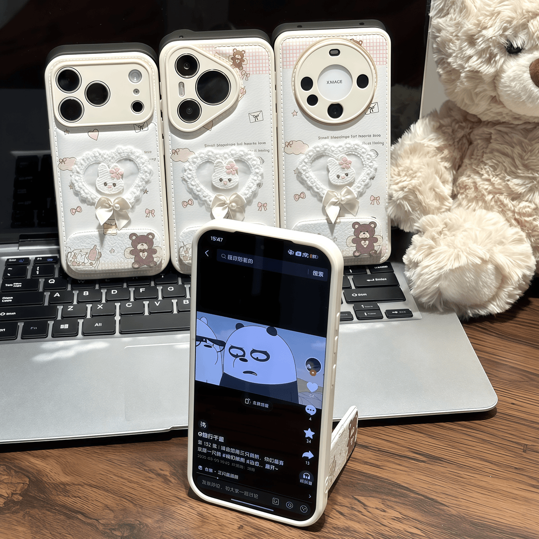少女心ins风立体小兔蕾丝爱心皮质手机壳适用苹果17ProMax小米17Pro华为pura vivo时0全包防摔卡通小熊蝴蝶结