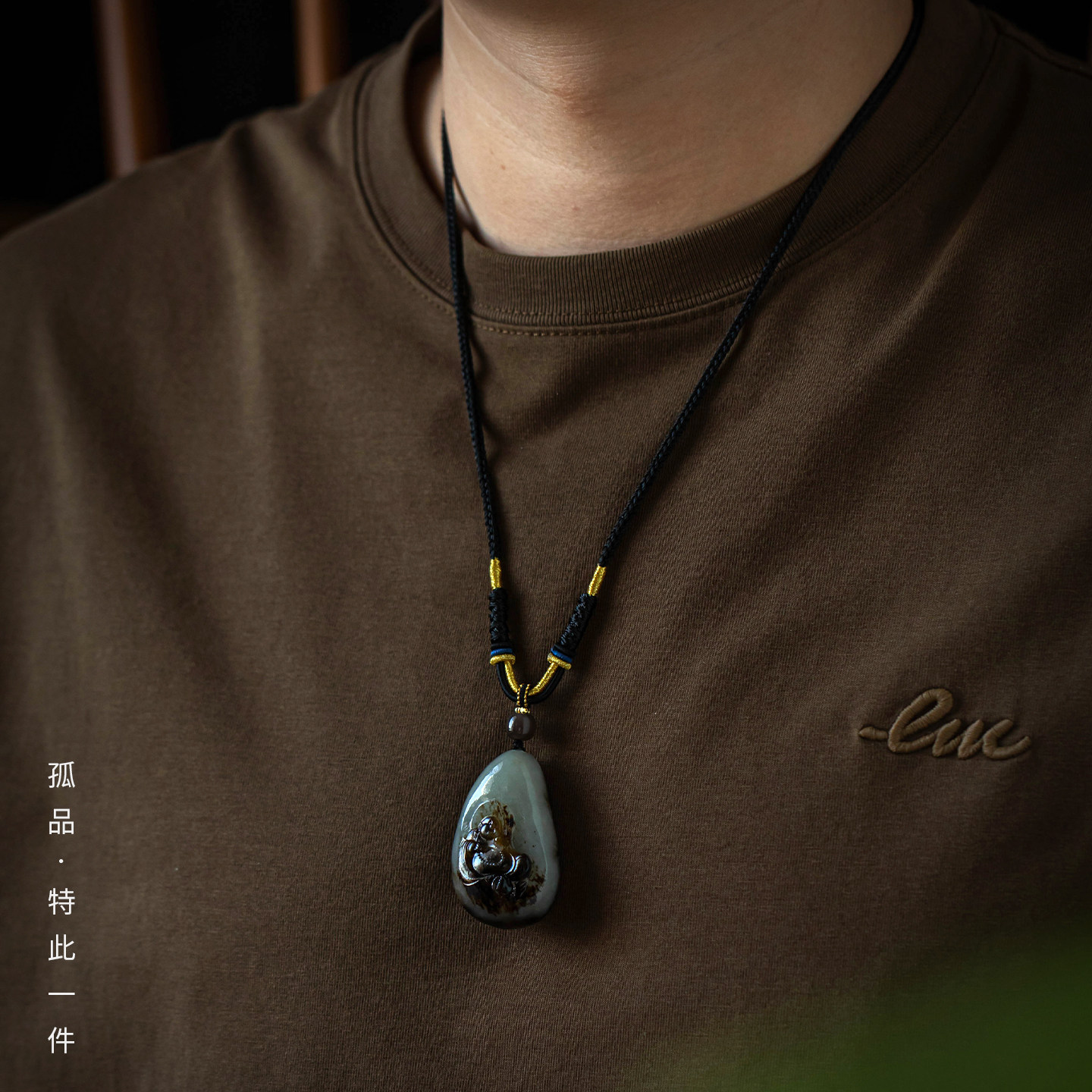【孤品-笑口常开】和田玉弥勒佛吊坠项链手工雕刻佛公坠 一物一证