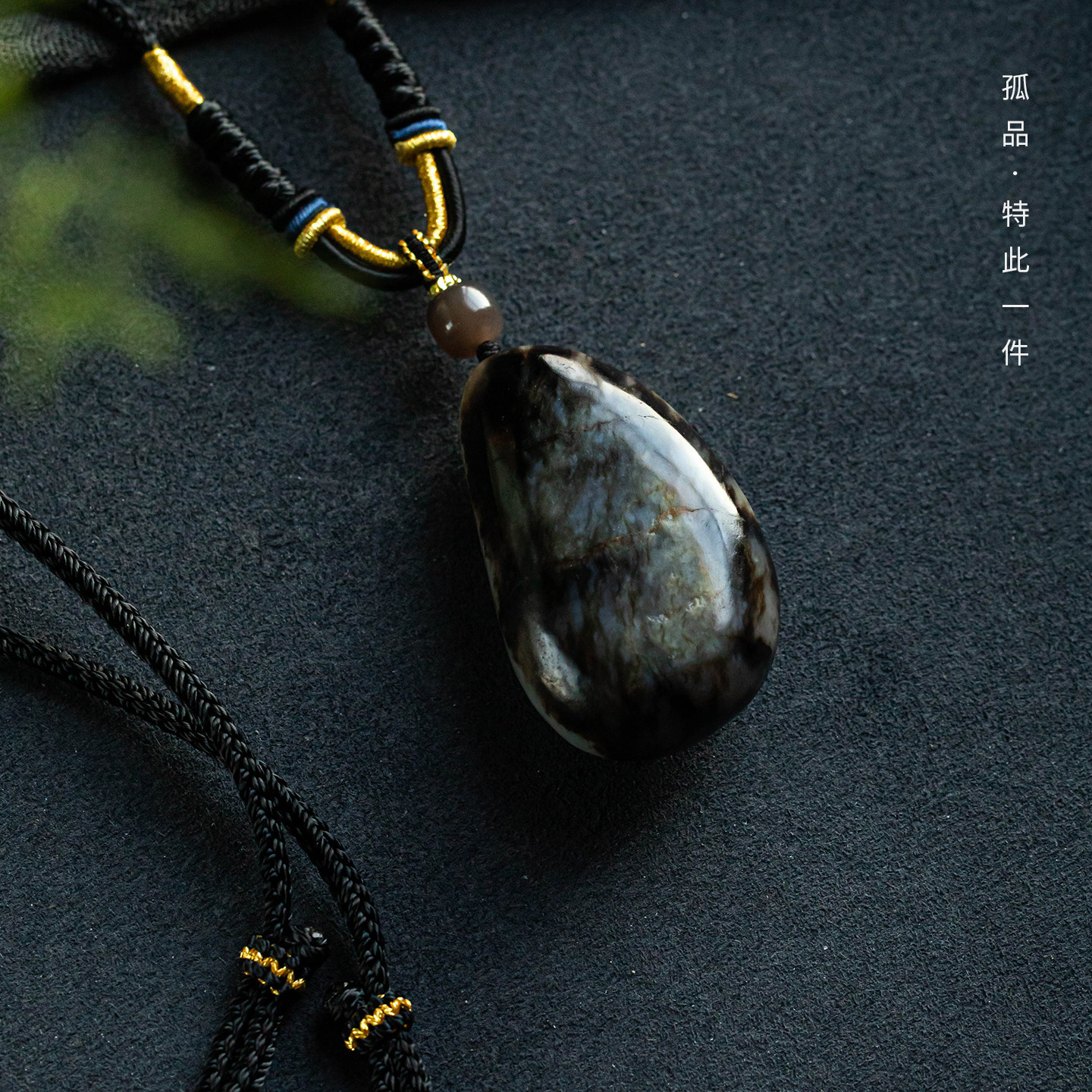 普陀山黑曜石无事牌吊坠女天然护身符项链平安符送男朋友的礼物