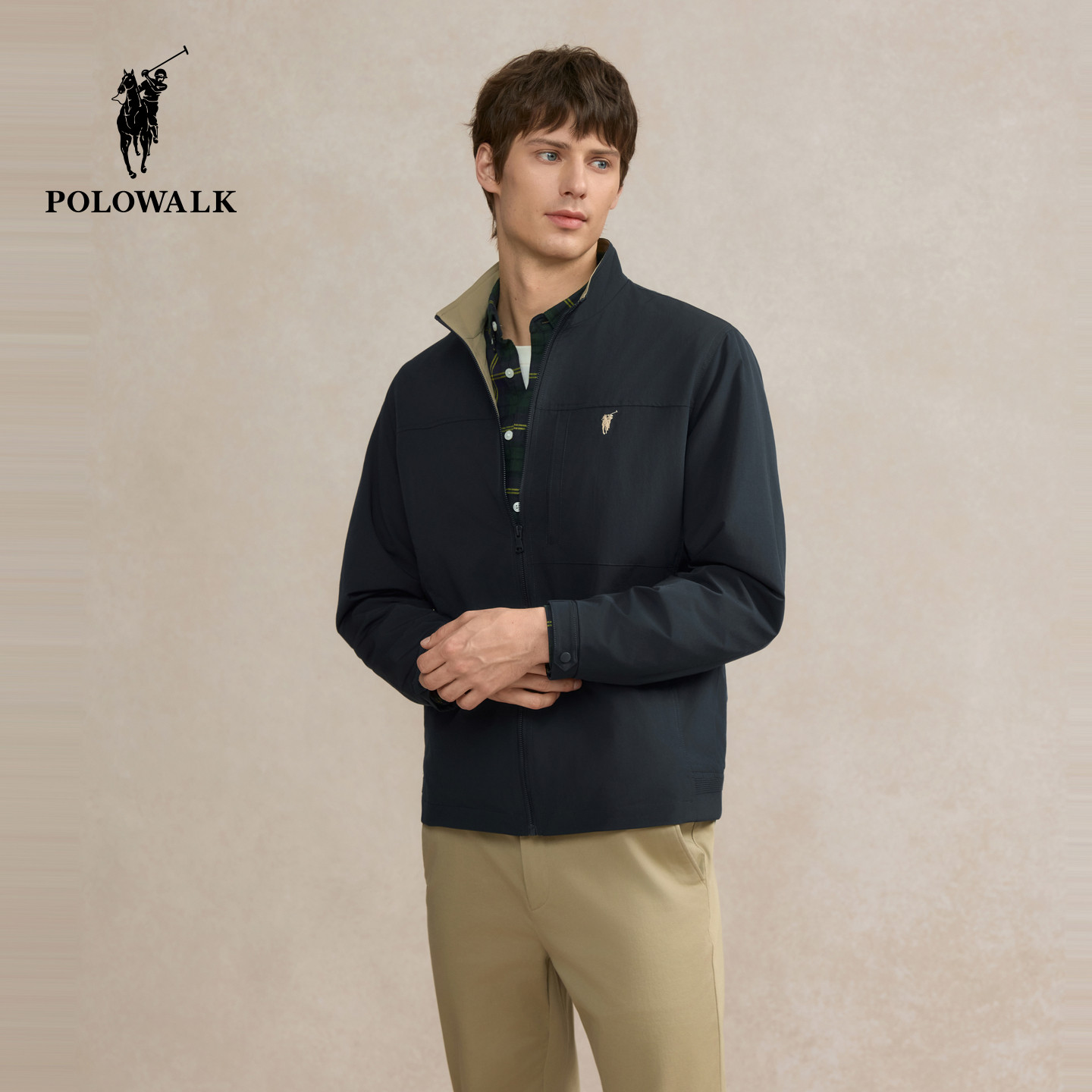 POLOWALK男式夹克25秋季新品商务休闲立领通勤时尚拉链直筒外套男
