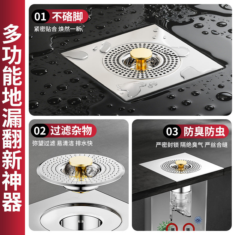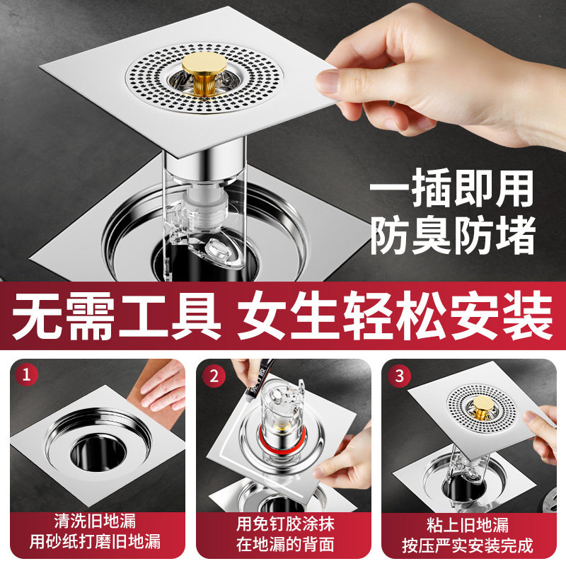 卫生间地漏翻新器通用防臭堵浴室下水道不锈钢防返臭神器封闭口盖