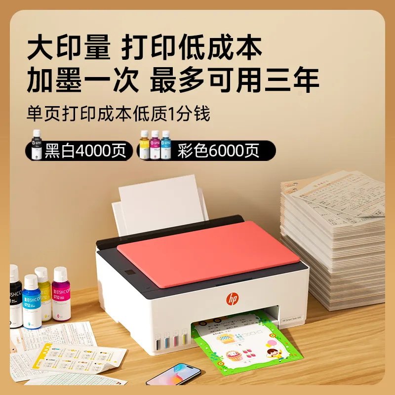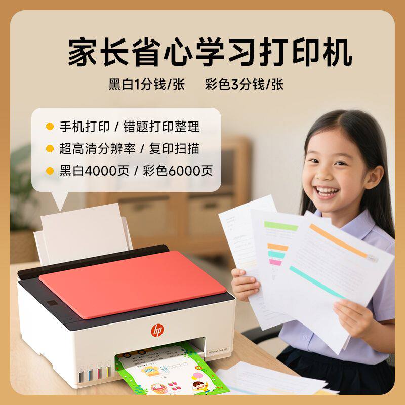 HP惠普tank599彩色连供无线家用小型打印机复印扫描一体机592喷墨墨仓式可连接手机学生照片家庭作业办公专用