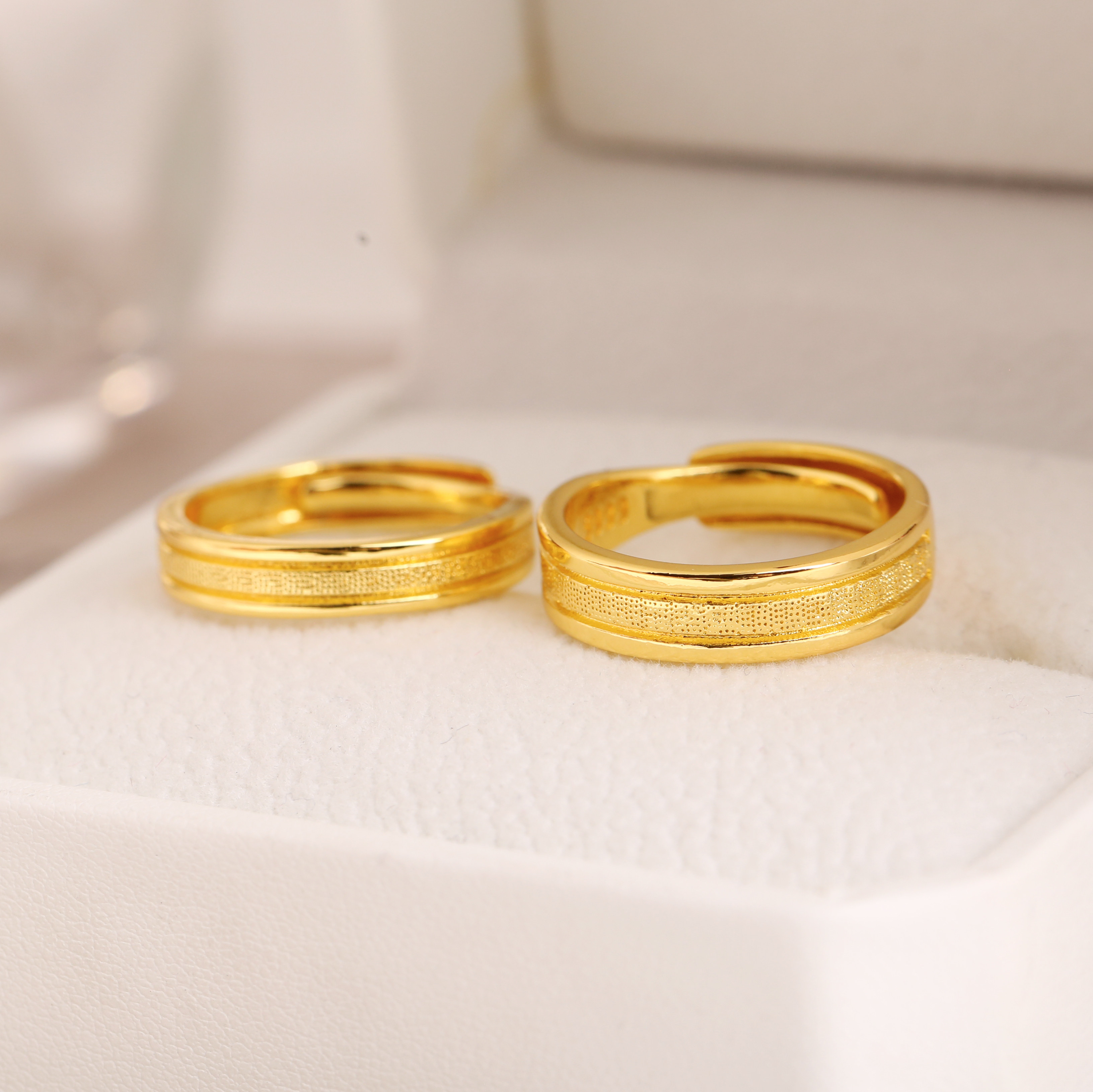 金店同款仿真沙金磨砂情侣对戒简约活口可调节结婚用的道具戒指