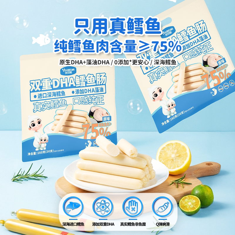 优贝加DHA鳕鱼肠独立包装肉肠儿童零食送婴儿幼儿宝宝食谱