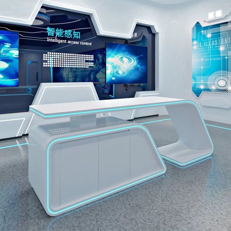 多层创意圆f形发光展示台烤漆科技感中岛技馆陈列柜展示柜
