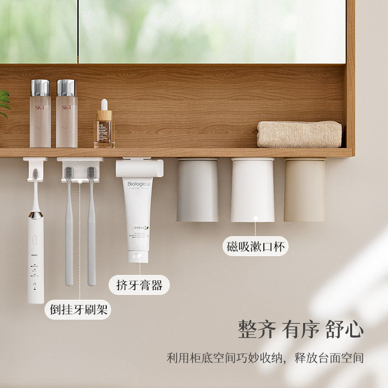 牙刷置物架壁挂式漱口杯刷牙杯套装简约免打孔电动牙刷悬挂收纳架