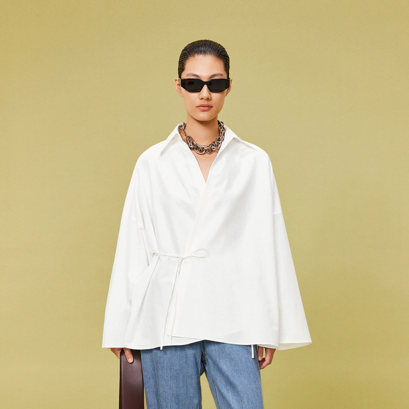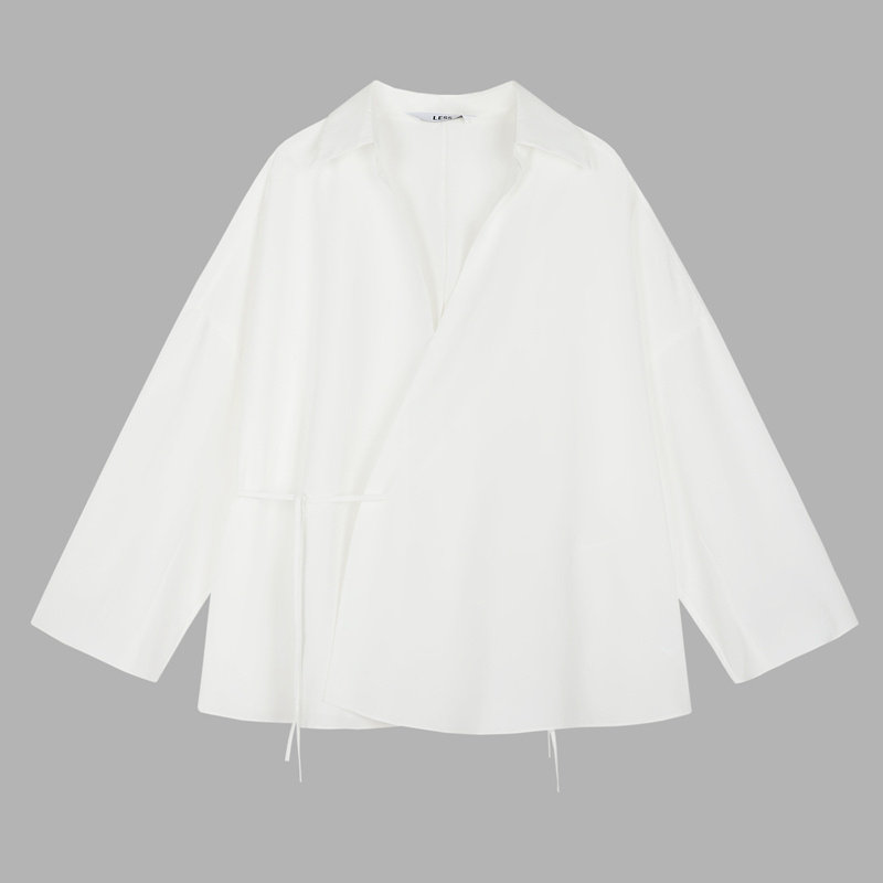 LESS春夏新中式衬衫女宽松女简约系带围裹式长袖衬衣2O6210470