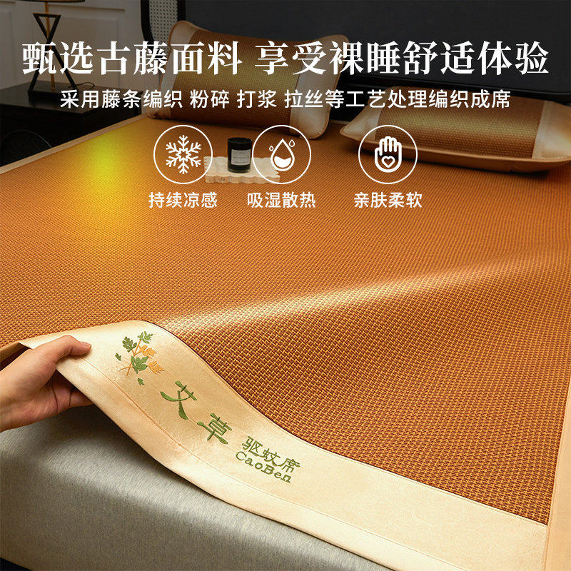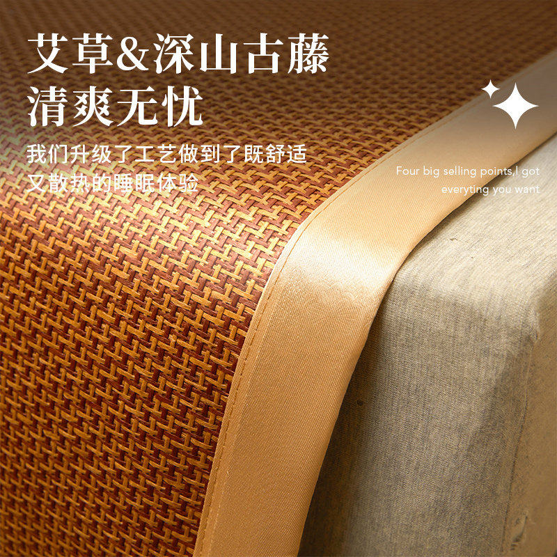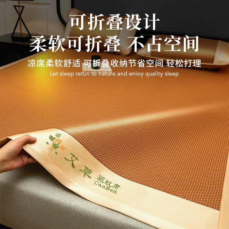 艾草加厚藤席夏季双人席子可折叠凉席冰丝席竹席单人学生宿舍夏天