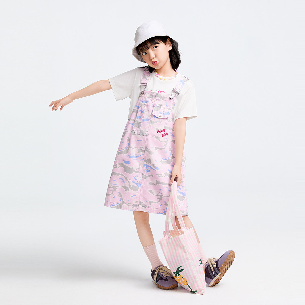 【商场同款】安奈儿童装女童梭织背带连衣裙春新款AG513548