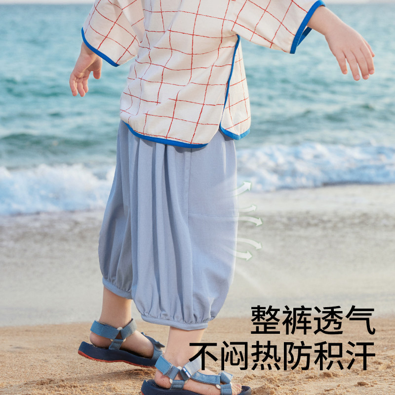 贝肽斯儿童裤子夏季2026新款男童女童防蚊裤宝宝运动透气七分裤