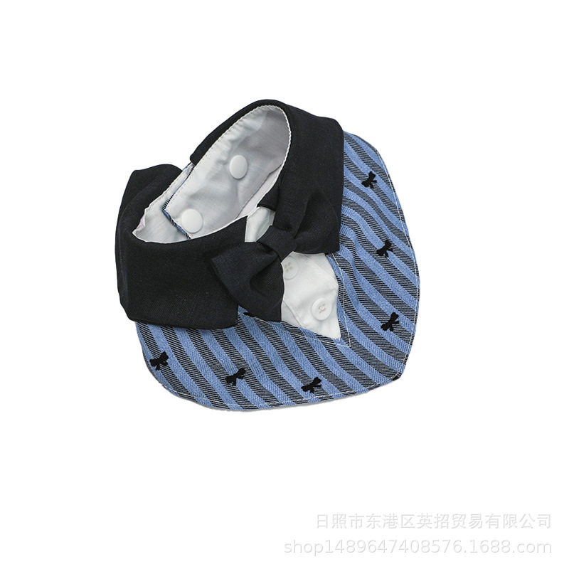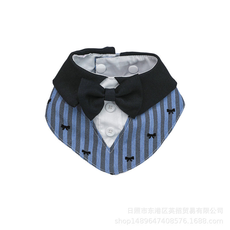 新款宠物绅士风围兜蓝黑条纹领结猫咪围嘴领带小型犬狗狗口水巾