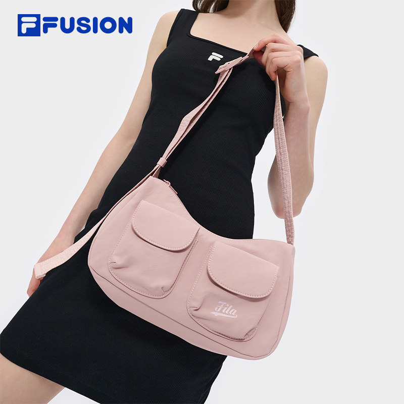 微笑包|FILA FUSION斐乐官方包包腋下包黑色单肩包斜挎包黑色女包