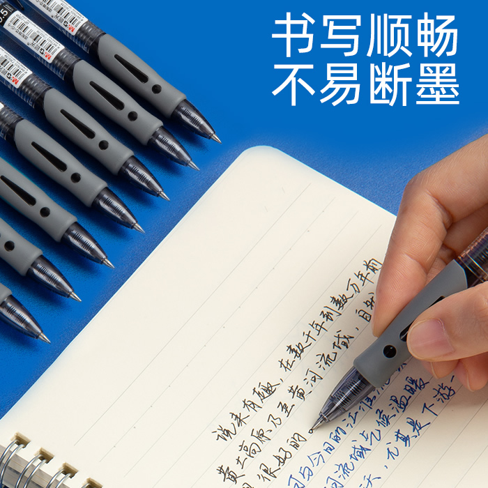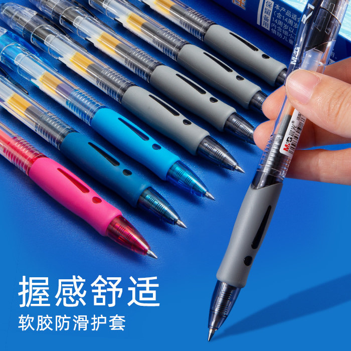 晨光中性笔按动式黑色水笔红色蓝色速干顺滑大容量学生用碳素笔