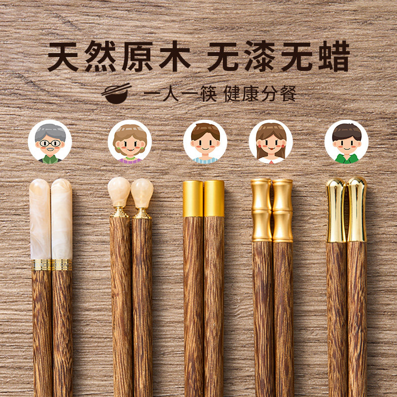 高档新款鸡翅木筷子家庭专人专用无漆无蜡实木质家用分餐红檀木筷