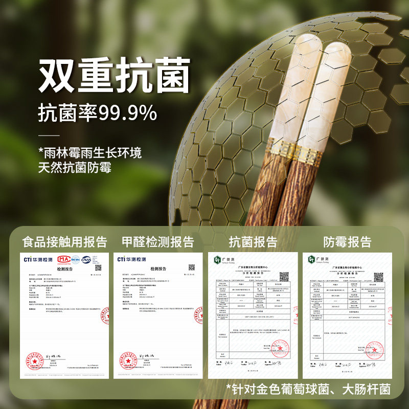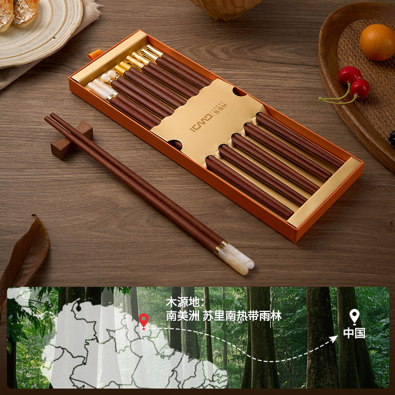 唐宗筷鸡翅木筷子家用新款无漆无蜡防霉抗菌中式实木筷可进洗碗机