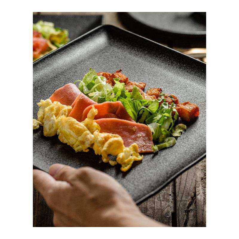 牛排餐盘西餐盘子陶瓷方盘家用黑色创意日式西式早餐圆盘牛扒餐具