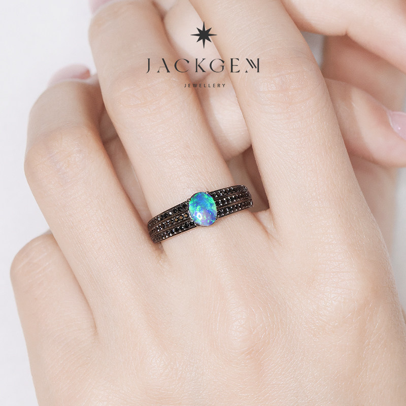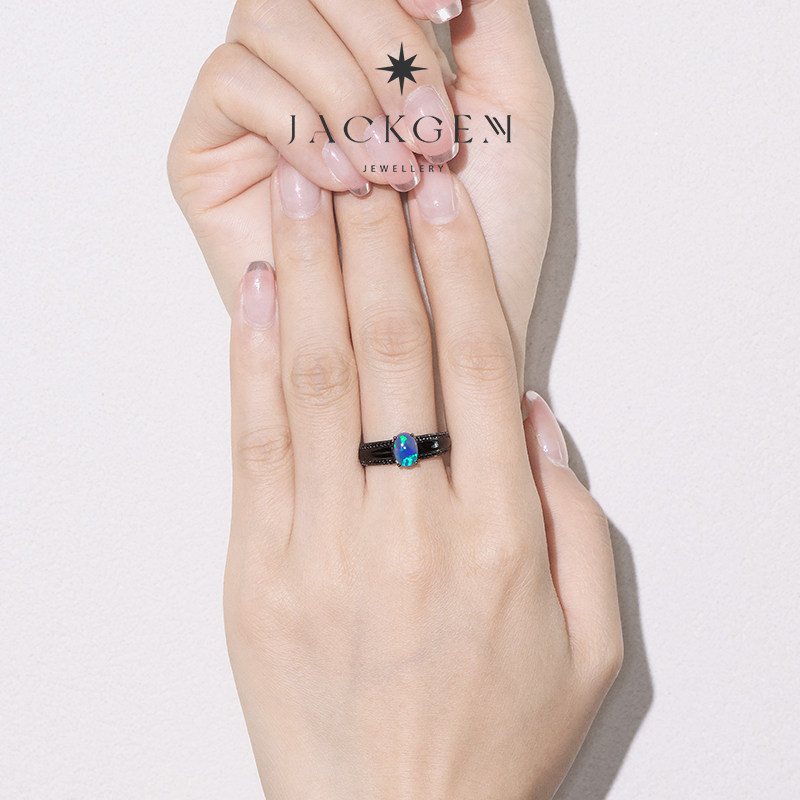【拾光2】欧泊戒指女蓝色宝石彩色宝石戒指女男士戒指彩宝首饰 T5