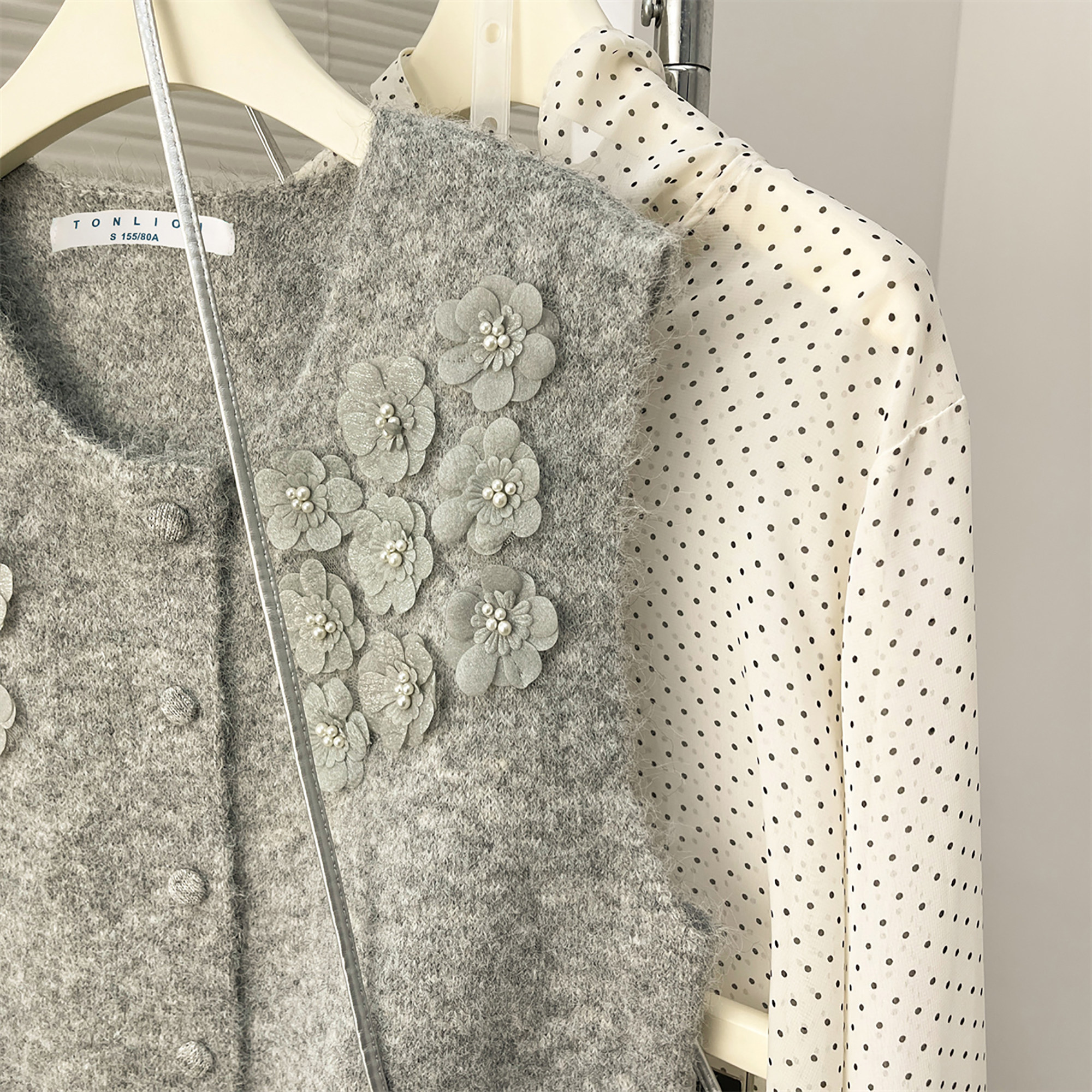 唐狮秋冬毛线衫女立体花朵设计开衫马甲女高级感百搭休闲上衣tu