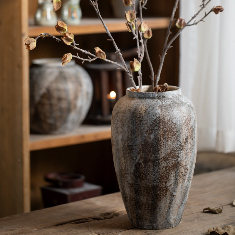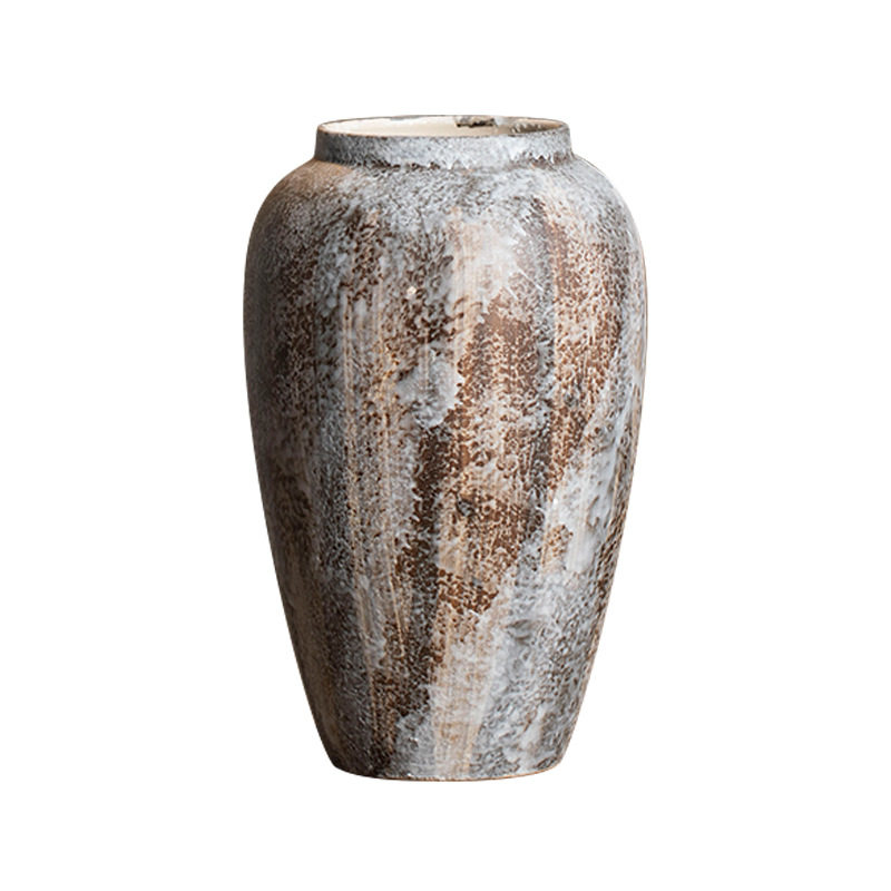景德镇侘寂风装饰品摆件斑驳老旧陶瓷手工花瓶客厅玄关插干花花器