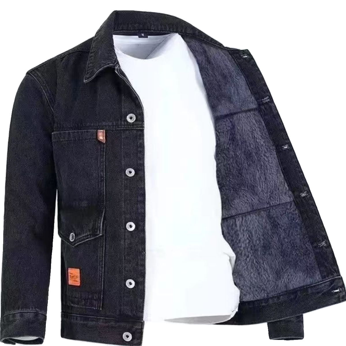 秋冬季黑色加绒加厚牛仔外套焊工耐磨工作服男士潮流帅气工装夹克