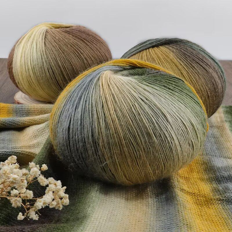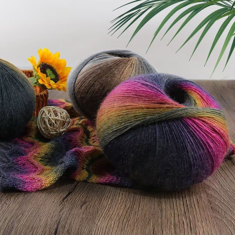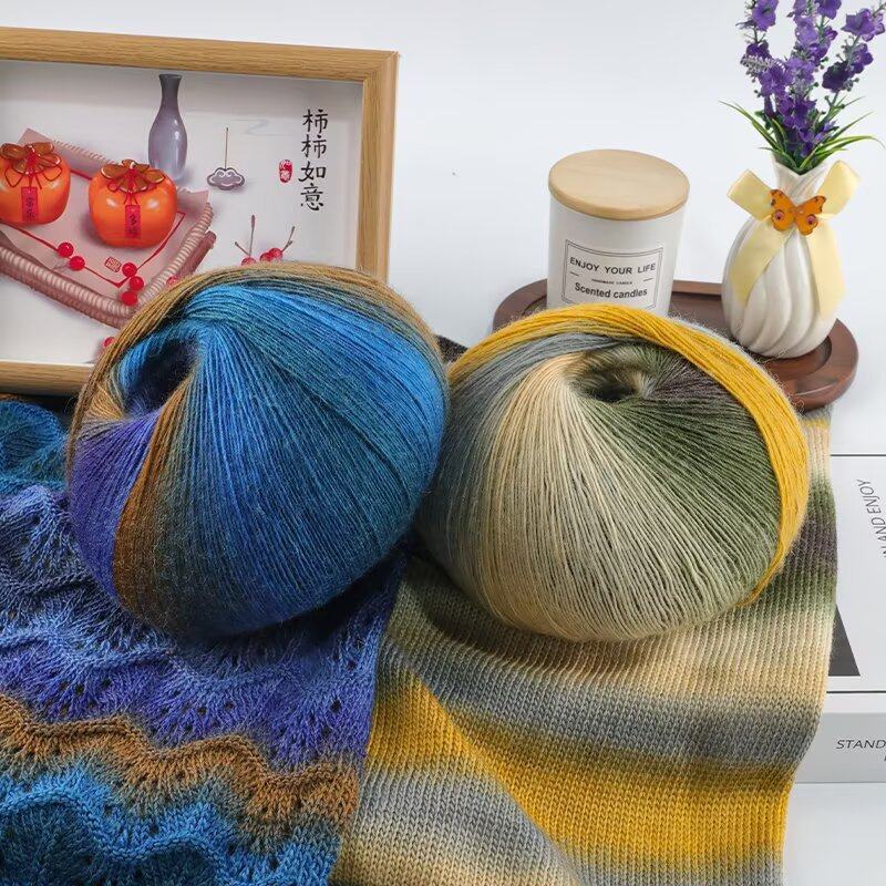 厂家批发段染渐变彩虹丝光羊毛线手编钩织披肩围巾外套帽子毛线团