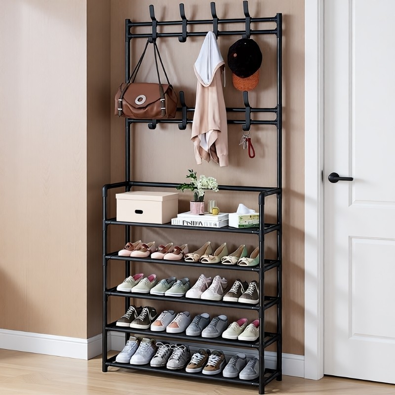 家用鞋帽架简易门口多层鞋架宿舍鞋柜出租房落地一体衣帽架置物架