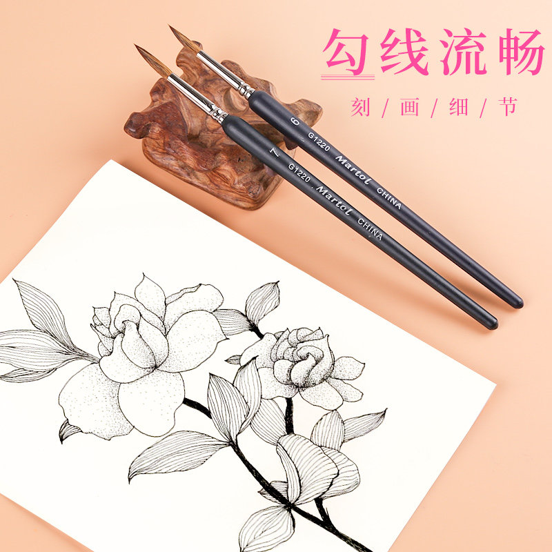 马利牌狼毫勾线笔面相笔水彩水粉尼龙勾线画笔手绘描边笔小毛笔细工笔细毛笔描线套装水粉丙烯国画工笔描边笔