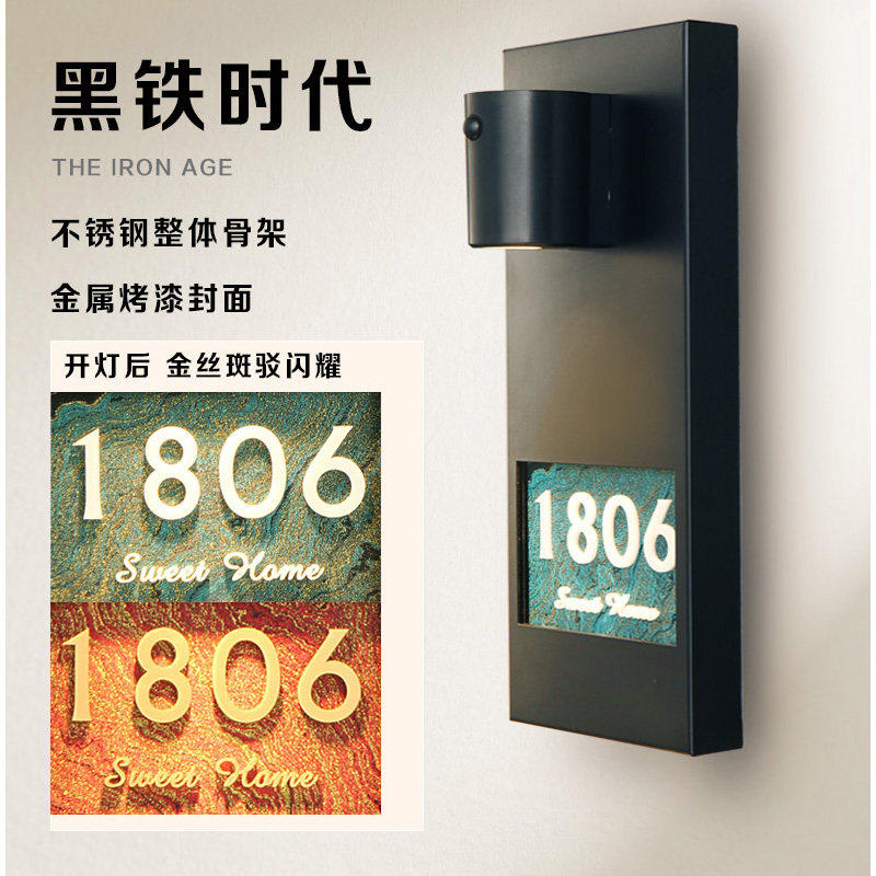 门牌定制高级感感应发光家庭家用入户门住宅酒店别墅工作室房间门牌门口装饰壁灯免费设计定制内容尺寸文案