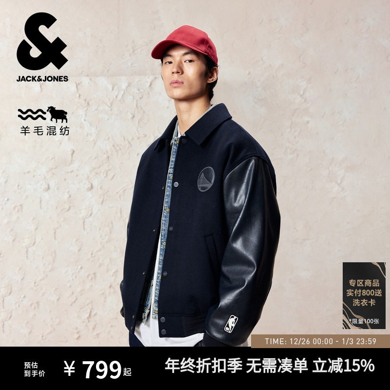 杰克琼斯男装秋冬毛呢大衣2025年新款NBA联名翻领按扣长袖外套