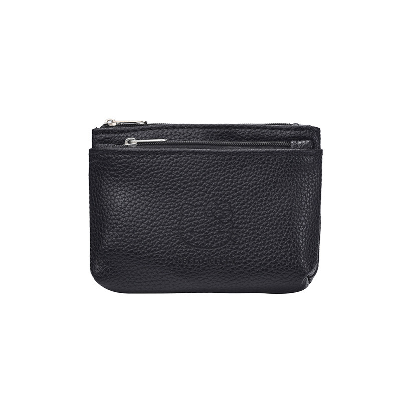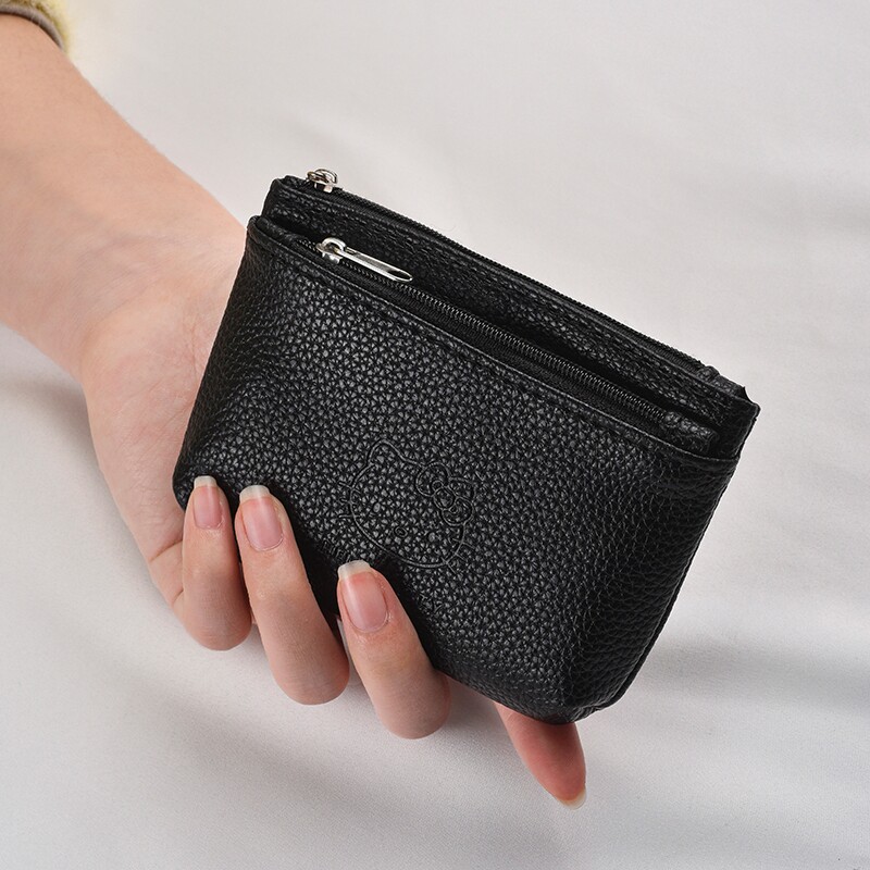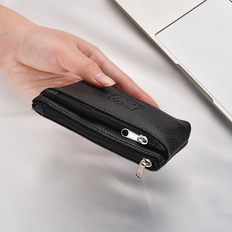 稻草人钱包女真皮黑色钱夹小巧小众高级感零钱包牛皮精致皮夹卡包