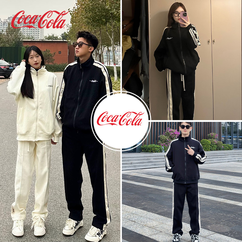 Coca-Cola/可口可乐秋装夹克套装男条纹秋冬款美式潮流衣服两件装